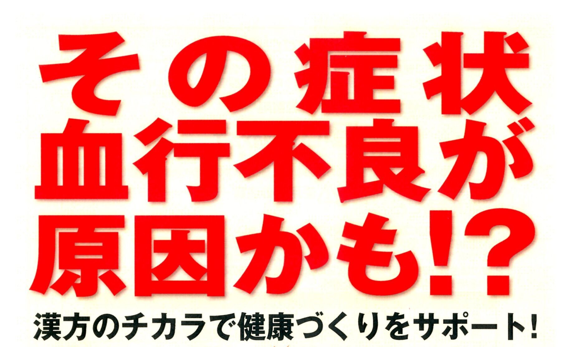お知らせ その症状、血行不良が原因かも!? 東洋医学では、血行不良の状態を「瘀血(おけつ)」と言います。肩こりや頭痛の原因の一つに、この瘀血があると言われています。瘀血は、冷えやストレス過多、運動不足、偏食などによって生じやすくなると言われており、生活習慣、食事習慣の改善や工夫、漢方... 2025.06.17 お知らせ